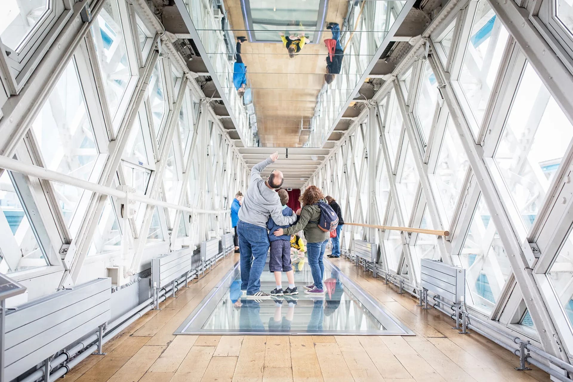 The glass-floored walkway offers a direct view of the Thames and the traffic moving below — a surprisingly engaging way to experience a familiar landmark.