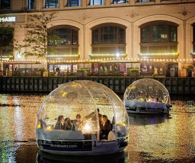 Operated by Skuna Boats, these floating igloos offer a rare way to experience London from the water. Moored among the modern architecture of Canary Wharf, the heated igloos create a private, weatherproof setting ideal for relaxed sightseeing.