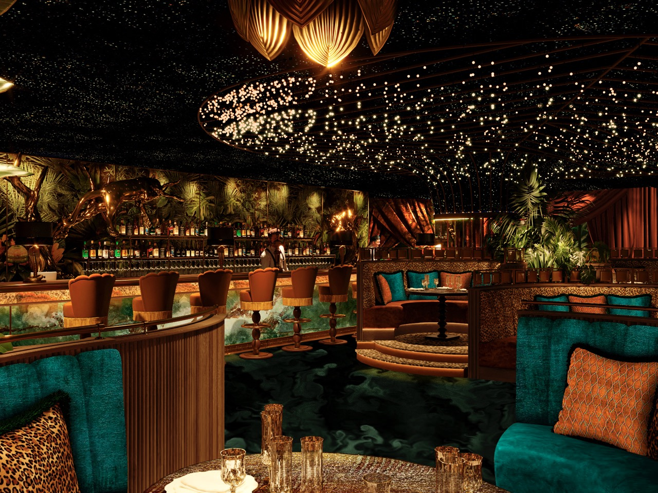 The terrace offers panoramic views of Monte-Carlo and an unbeatable view of the famous Place du Casino, the ideal spot to see the Formula One Grand Prix track, and lounge areas both inside and outside, a Cigar terrace, and an exclusive club hidden beneath a leopard print staircase. The culinary experience, the cocktails, and the music, that take inspiration from the flavours and rhythm of Latin America - welcome to the jungle!