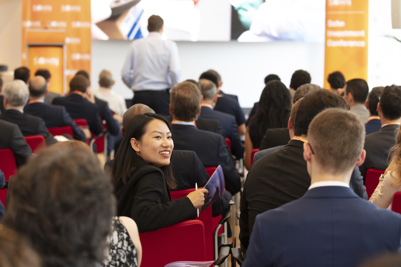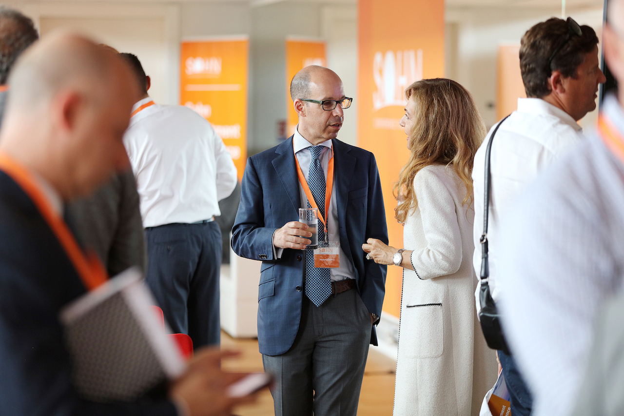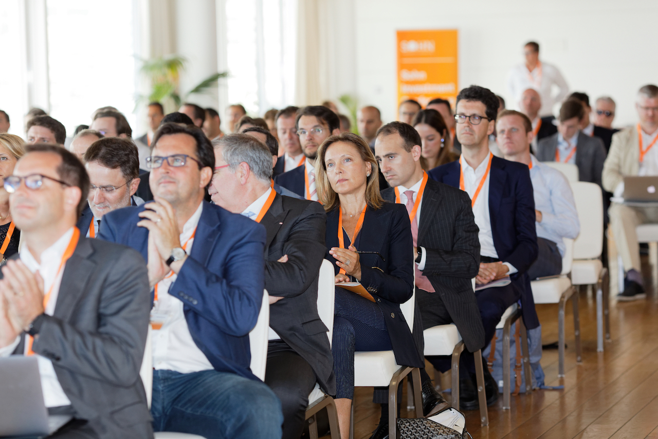 The day's agenda includes a networking lunch, two sessions of presentations, a coffee break, and a closing cocktail reception. The speaker lineup, featuring prominent industry figures, will provide insights into the latest investment strategies.