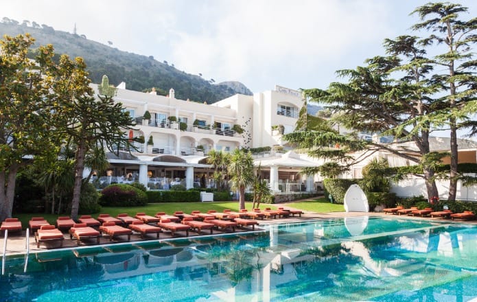 Situated in the heart of Capri near the iconic Piazzetta, Grand Hotel Quisisana combines historical charm with modern luxury. This hotel features elegantly decorated rooms and suites, a wellness center with Turkish baths, and a beautiful outdoor pool. Guests can unwind at the Quisi Bar, renowned for its aperitifs, or dine at the on-site restaurants offering gourmet cuisine. The central location allows easy access to Capri’s bustling life and scenic spots.