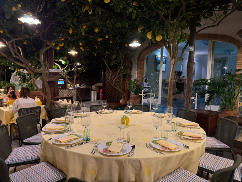 Before it became a restaurant, the area was a simple garden where lemons and grapes were cultivated. The family decided to focus on the lemon grove, recognizing its potential to provide a distinctive and aromatic backdrop for their dining venue. Today, the lemon trees are not just a scenic feature but also an integral part of the menu, with many dishes incorporating the fresh, zesty flavor of the fruit.