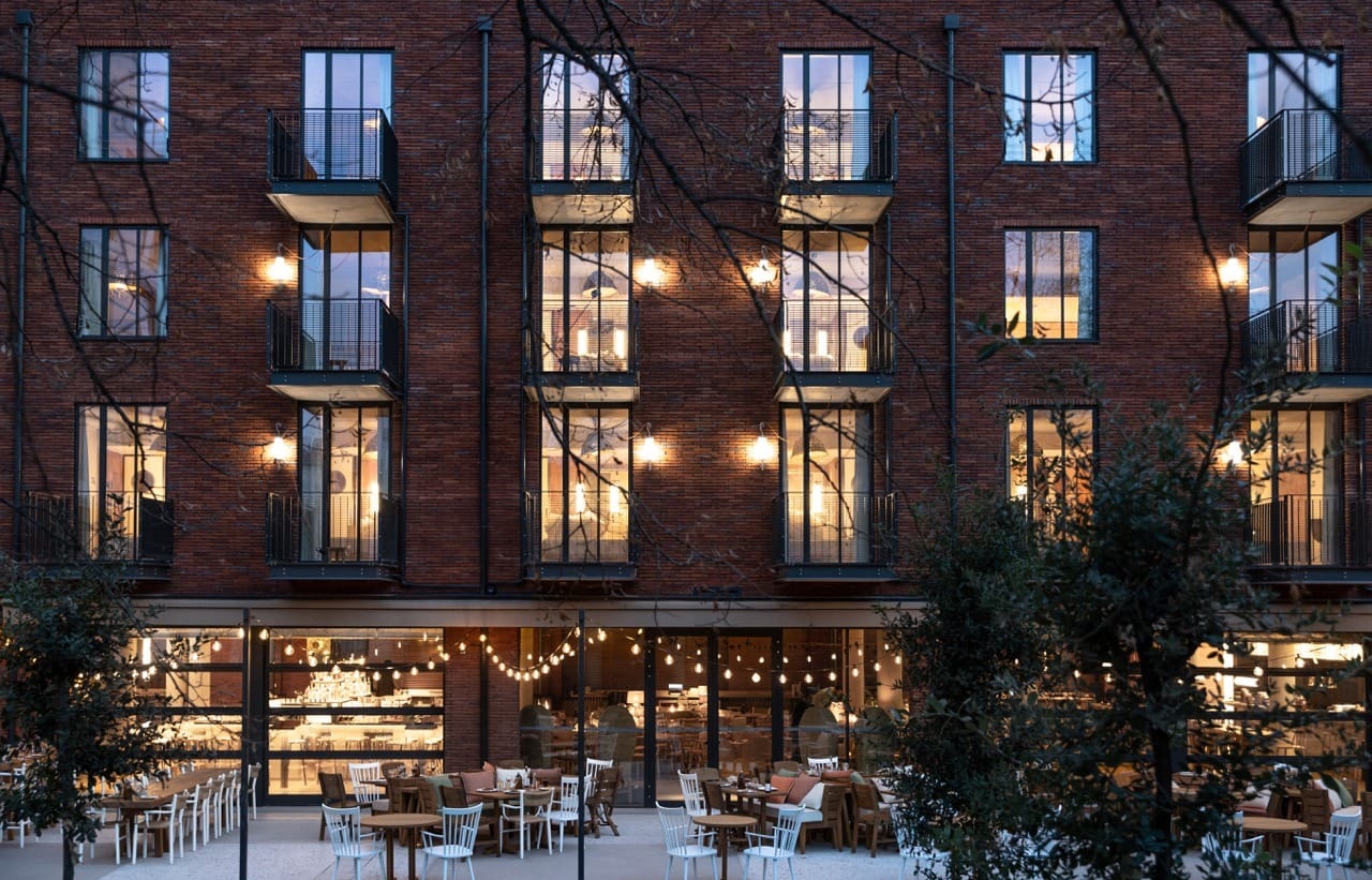 MOB HOUSE embraces social ecology, incorporating sustainable practices throughout its construction, furniture, and catering, focusing on natural materials, fresh produce, and organic and handmade hygiene products. The hotel aims to create a harmonious space where work and leisure intersect, catering to nomadic workers with designated spaces, including an open kitchen and conversation rooms.