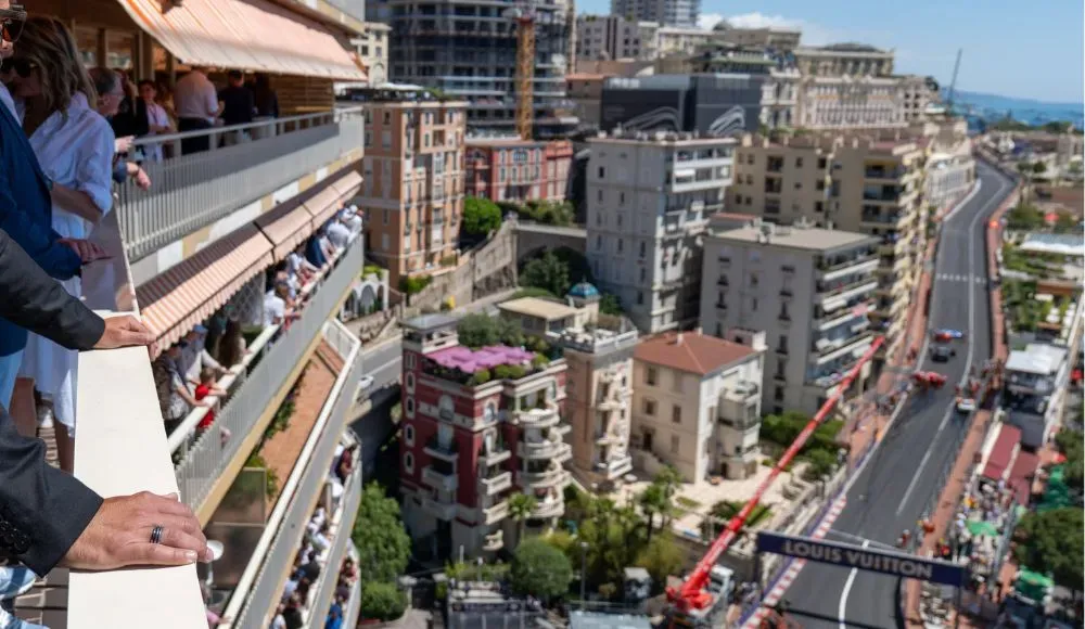Sold as Beau Rivage building terraces, typically covering Turn 1 (Sainte-Dévote) and the Beau Rivage climb.