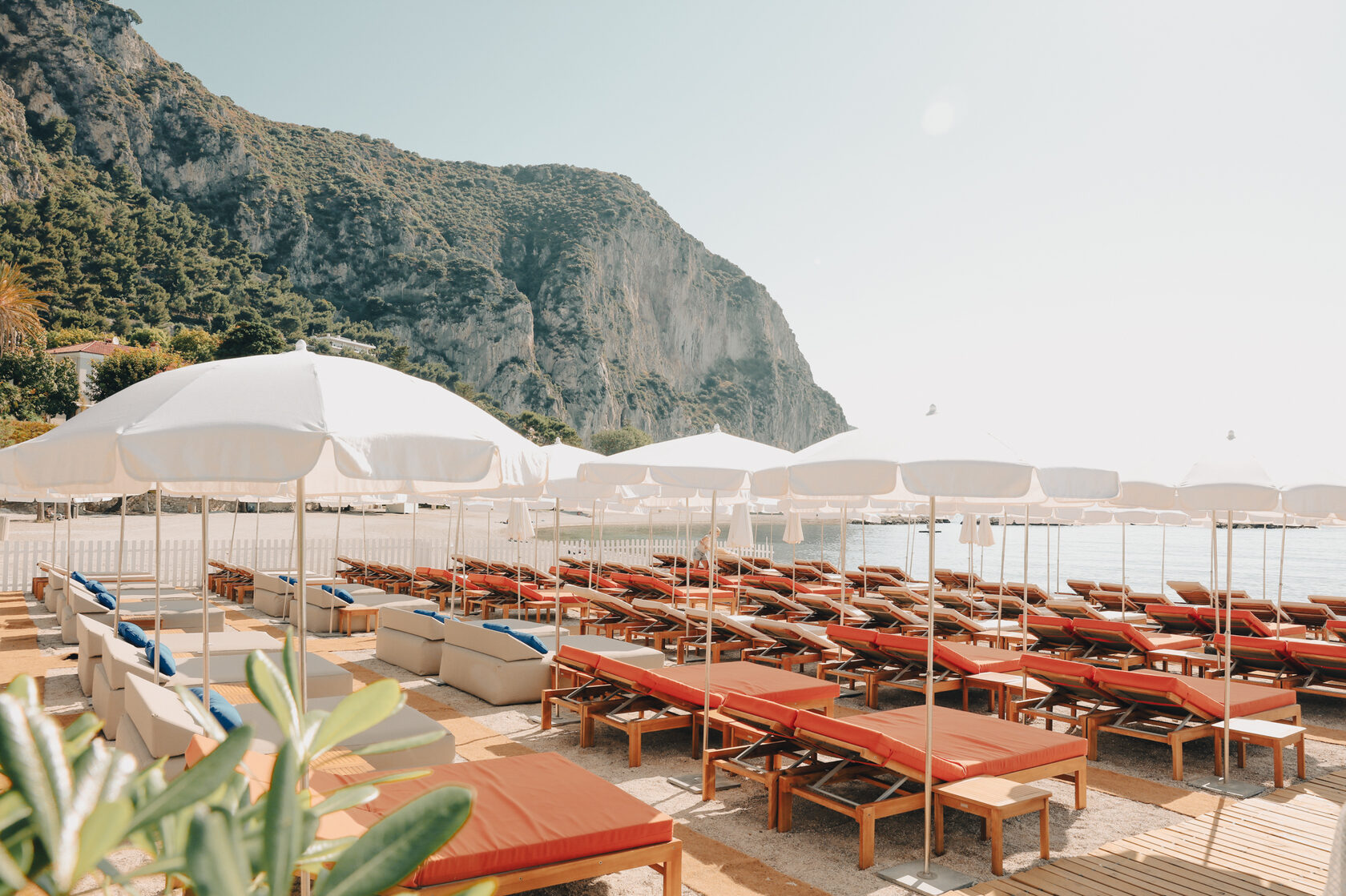 Tip: Reserve Jacquemus-branded sunbeds in advance