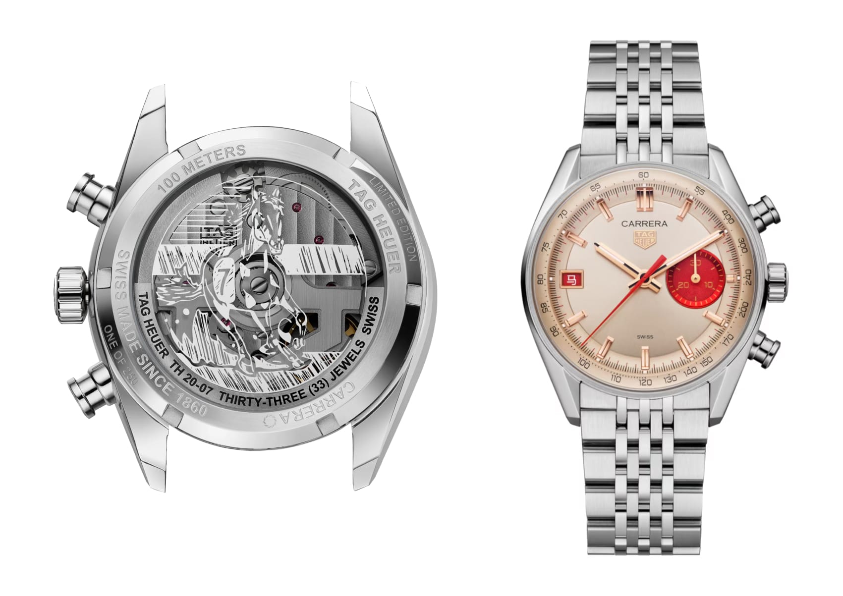 TAG Heuer goes celebratory without becoming costume: the Carrera Chronograph “Year of the Horse” (39 mm) leans into a red-and-gold festive palette and positions the Horse as “energy” rather than ornament—an approach that keeps it wearable beyond February.