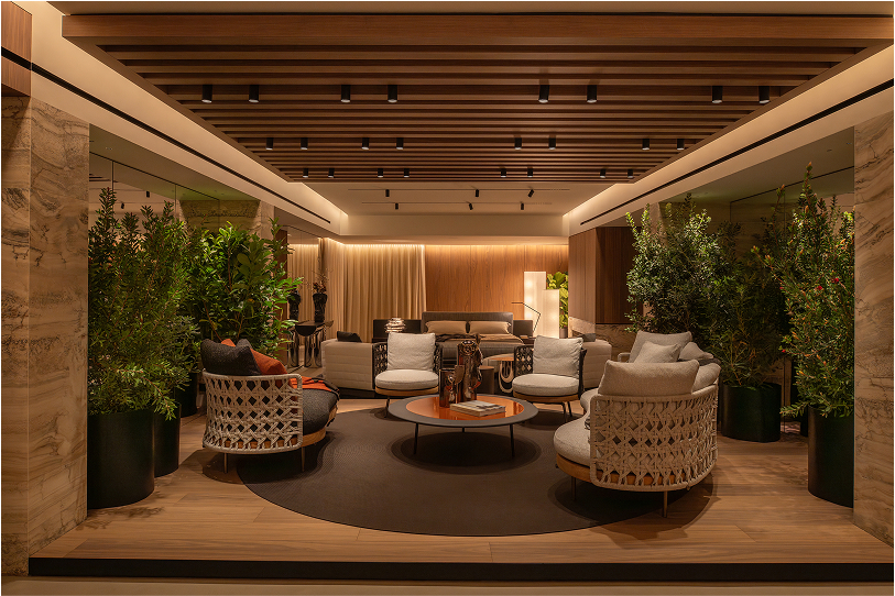 A collaboration with DESIGNSET, led by the Stanionis family, the boutique unfolds across 360 square metres, spanning two floors. Designed by DESIGNSET together with Minotti Studio, the space is a study in contrast and harmony — a seamless dialogue between contemporary design and the timeless poetry of Mediterranean living.