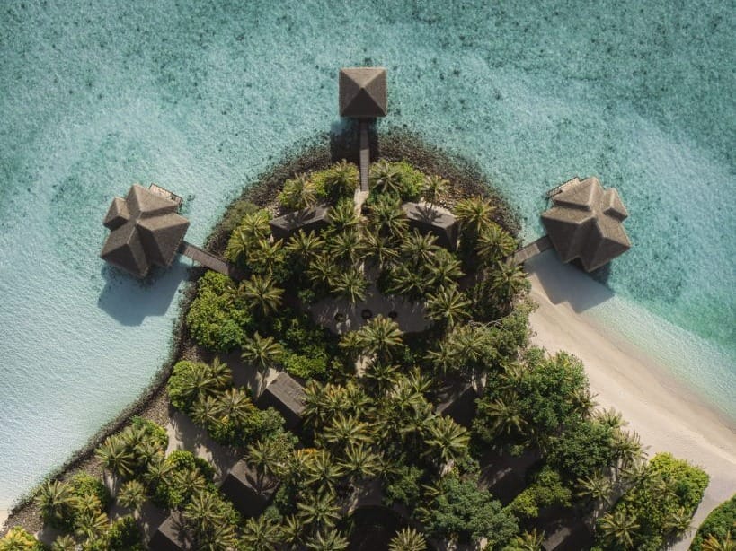 Proving that luxury doesn't always need gilded edges, this architectural marvel floats like a collection of perfect circles above the azure waters. The spa is a floating sanctuary that looks like it was designed by aliens with exceptionally good taste. Their drone butler service (yes, really) delivers champagne to your villa terrace, because walking to the bar is so passé.