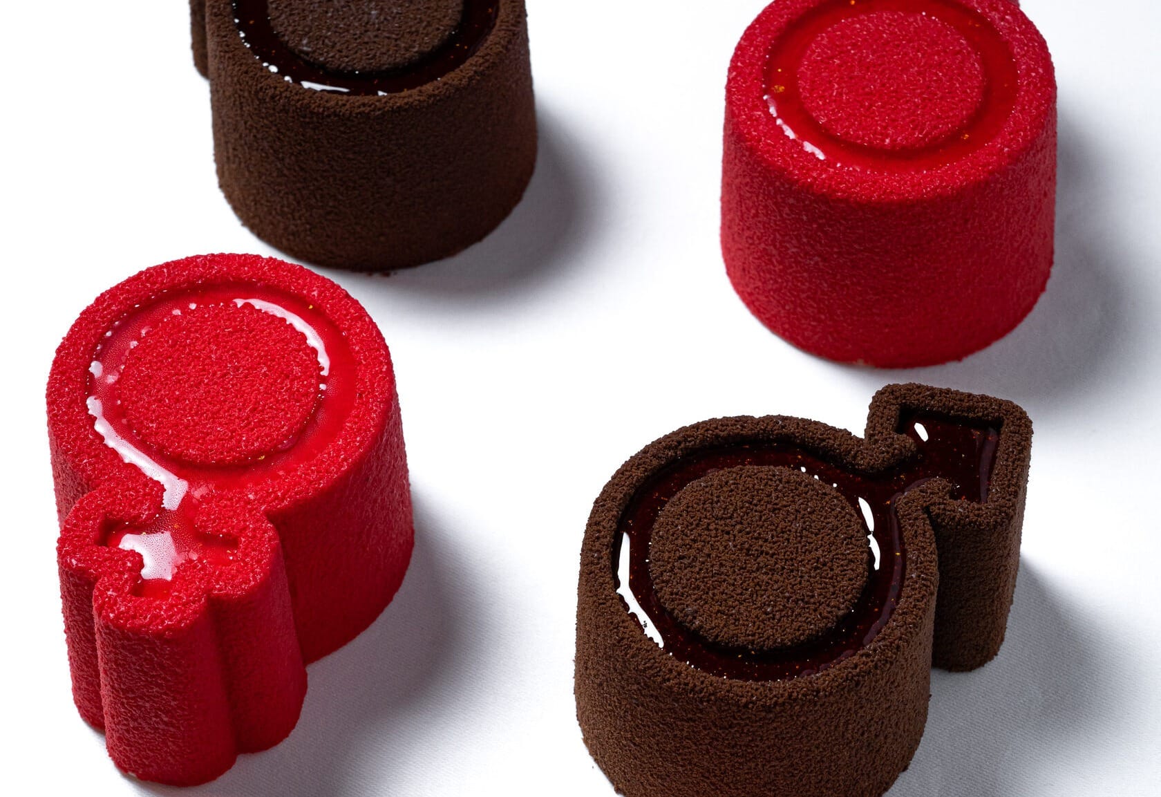 Just as they are every Valentine’s Day, couples are the central theme for Quentin Lechat’s creations, and this year he is paying homage to originality and duality. Our Pastry Chef has given free rein to his imagination with not one, but two exclusive individual pastries with flavours known for their aphrodisiac qualities. One is shaped like the symbol for male, blending chocolate, ginger and mustard seed, and the other is the female symbol with touches of vanilla and saffron.