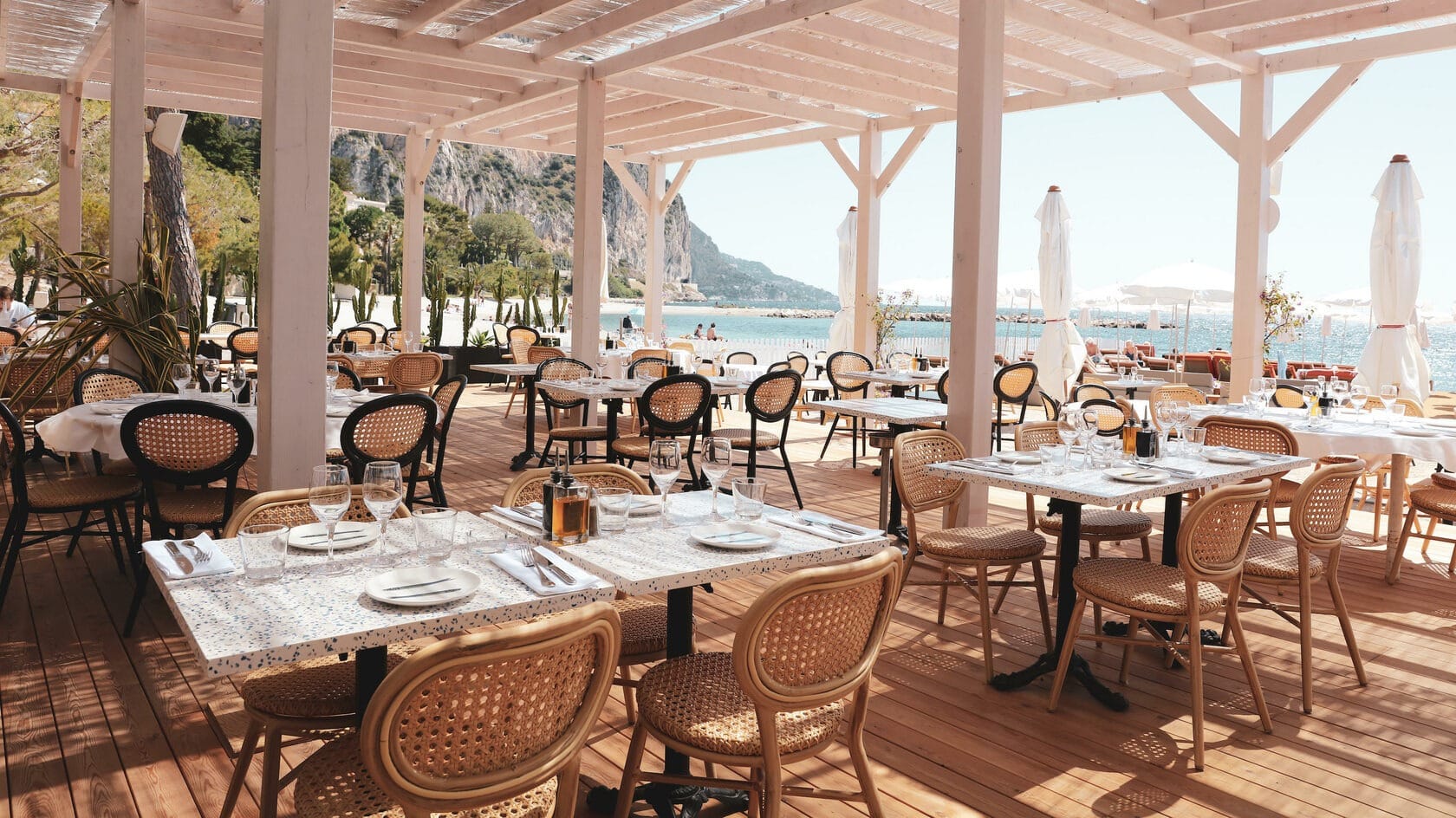 This elegant and sophisticated beach at the Monte-Carlo Beach Hotel combines everything one needs for the perfect beach experience: plenty of sunshine, fresh air and fine dining. The beach is the ideal spot to enjoy the true Dolce Vita; its design is a poetry that exudes respect to the majestic colours and textures of the sea. Here you will find Elsa, a Michelin-starred restaurant serving 100 percent organic cuisine and wild caught seafood. The restaurant’s culinary guru, Paolo Sari, is not the first chef to receive a coveted Michelin star, but he is the first to do so for an all-organic restaurant. The Venetian-born maestro employs 30 local producers from France and Italy, deals with a selection of wineries, and even makes his own mozzarella. We recommend you to start with the assorted summer vegetables from the chef’s own garden, finished with extra-virgin olive oil and fleur de sel from Camargue. Then, proceed with one of the main dishes - perhaps gold risotto with saffron, juicy roasted suckling pig with caramelised shallots and potatoes, or a roasted rack of lamb coated with honey celeriac and licorice puree. If you have any space left for dessert, we recommend sampling the soufflé with almonds or the three-chocolate and caramel mille-feuille with caramelised fig sauce - all with a picture-perfect view of the Mediterranean from Elsa’s spacious terrace.#nbsp;
