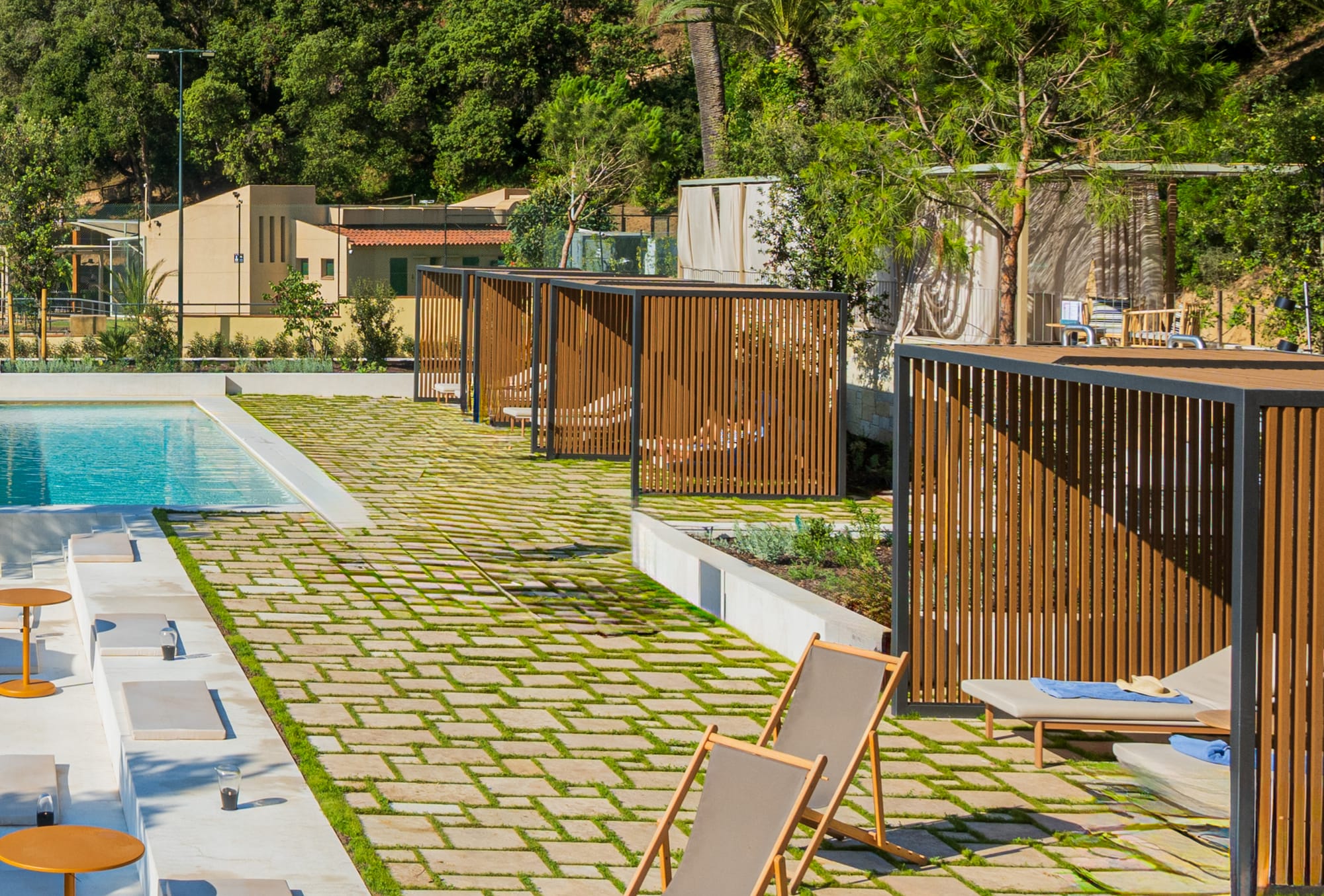 SantaMar is not just about aesthetics; it is an experience in itself. The club features two pools, comfortable sun loungers, Balinese beds, and wooden cubicles known as nests, offering guests multiple ways to relax and rejuvenate. The pool with stepped depths and the adjacent solarium provide an idyllic setting for soaking up the sun, while the seaside massage area, surrounded by lush vegetation, invites guests to indulge in ultimate relaxation, whether alone or with a partner.
