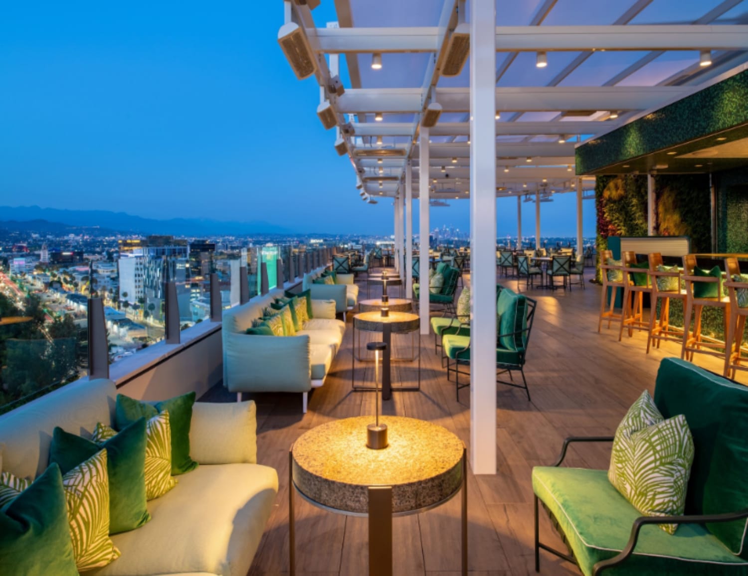 A serene garden retreat above the city, The Rooftop at Waldorf Astoria Beverly Hills offers nearly 360-degree views from the Hollywood Hills to the Pacific. Chef Peleg Miron’s seasonal, Asian-inspired menu is paired with signature cocktails like the Mezcal Sunset. Tuna Crispy Rice and the Lobster Burger are crowd favorites. From afternoon lounging to sunset dining, this rooftop is one of the most coveted vistas in Los Angeles.