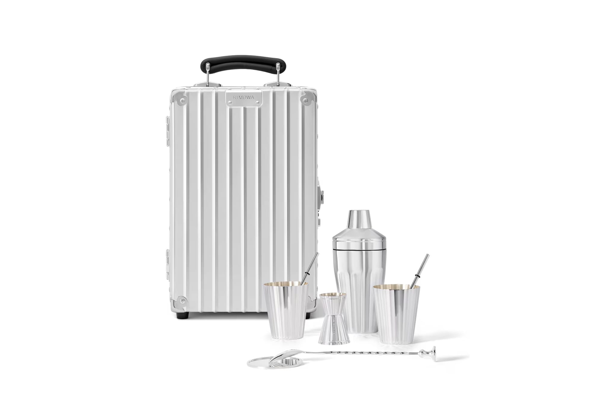 Industrial aluminium meets hand-finished silverware. The Rimowa case houses a full cocktail service crafted by Robbe & Berking, turning mobility into ceremony. Designed for those who host with intention, not excess.
