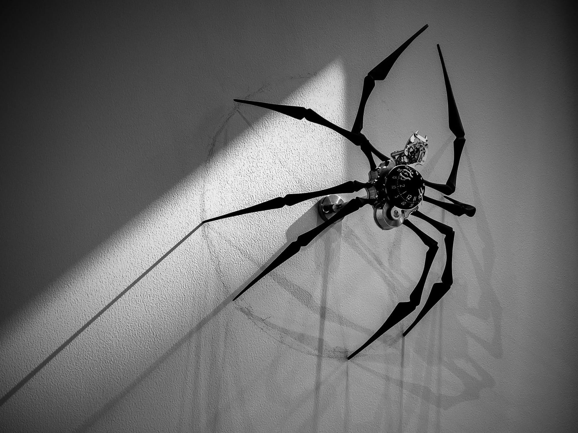More kinetic sculpture than desk clock, Arachnophobia translates traditional mechanical horology into an object that questions form altogether. The eight-day movement sits exposed at the centre of a spider-like structure, with articulated legs allowing wall or desk placement. It suits collectors who already think beyond the wrist.
